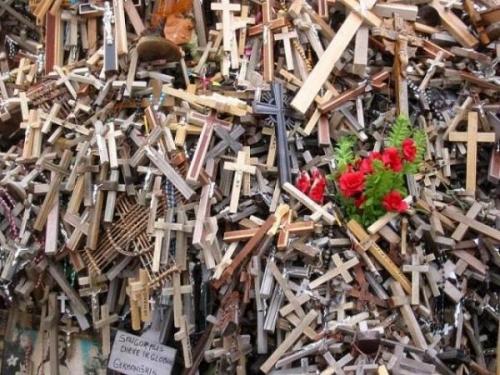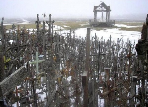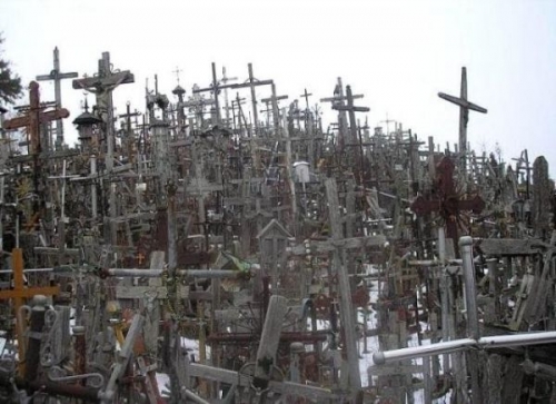 «Jurgaiciai» (прошлое название холма) расположена в 12 километрах от города Шяуляй по дороге Калининград-Рига. Не подумайте, это не кладбище. По легенде, если ты оставишь на холме свой крест, тебе будет весь остаток жизни сопутствовать удача. Огромнейшее разнообразие можно там наблюдать: от деревянных крестов в несколько метров до нательных крестиков. Одно распятие установил