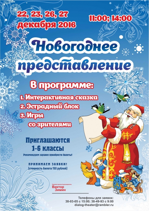Заказ билетов по телефонам: 20-54-18, 8-920-325-84-90.