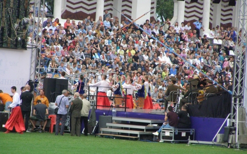 Само представление было ярким и интересным, подготовленное в русском народном стиле, с парадом участников конного похода, с джигитовкой, с танцевальными и вокальными номерами, не смотря на одну «маленькую» проблему. Сцена была повернута только к одной стороне (левой) трибуны стадиона, вход на которую был исключительно по пригласительным билетам. О их существовании правая сторона не знала. Сообщений о раздаче пригласительных информации не было. Выступления наездников так же проходило только возле левой части стадиона. Все песни, танцы и речи гостей были спиной к зрителям правой трибуны.