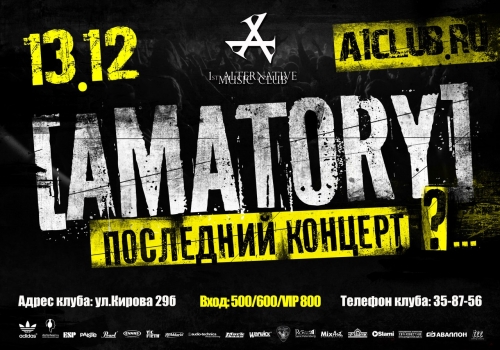 «[Amatory]. Последний концерт?», — именно такой лозунг был изображен на афишах предстоящего концерта знаменитой альтернативной группы. Последний он или нет, на этот вопрос точно ответить не сможет никто. Но если поверить написанному, то становится интересно: как же участники группы попрощаются со своими слушателями?