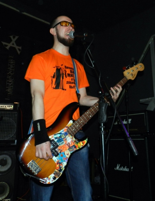 Сергей: Потом после определенного количества репетиций Денис, игравший на тот момент на басу в трех группах, решил не играть в начинающей СКАзке, и в команду позвали меня. Мне позвонил Толик и спросил: «Будешь у нас басистом?». «Буду». «Приходи в семь»…