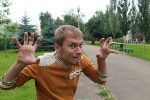В первый раз я пришел и даже не участвовал, просто наблюдал за тренингом. Я увидел взрослых людей, которые, как я тогда посчитал, занимаются какой-то ерундой: прыгают по сцене, делают непонятные телодвижения, издают нечленораздельные звуки. Но в общем, если сложить все это в единую картину, получалась сильная энергетика, которую создавали несколько человек вместе, массовая энергетика. И меня это напугало, я реально подумал, что это секта, которая под видом театра заманивает людей. Я хотел подойти к Марине и сказать, что это, мол, глупо, и чтобы она уходила оттуда. Но потом решил, что она меня даже не послушает, и сам пришел поучаствовать в паре занятий. Было это девять с половиной лет назад (смеется). После того, как я поучаствовал, я понял, насколько это замечательно, круто, необычно. Я участвовал в тренингах с незнакомыми людьми, и это сблизило нас с ними, я понял, какие это хорошие люди. Все они собрались, чтобы сделать общее интересное дело. Тренинги – это ведь только подготовительная работа…