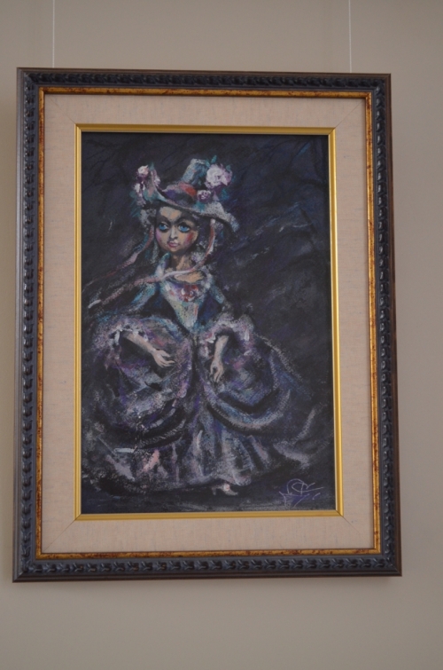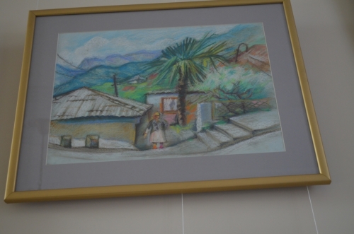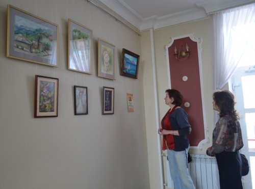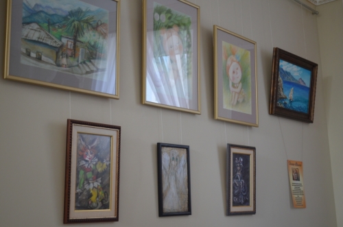 Выставка посвящена юбилею художницы и включает в себя самостоятельные работы, выполненные в технике пастели: «Ялтинский домик на фоне Ай-Петри», «Колокольчик», «Бабочка»; работы в смешанной технике «Арлекин», «Ангел», «Из Гейне» и работа маслом «Скала Парус».
