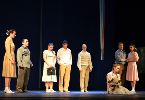 Третий фестивальный день стал наиболее драматичным – в зале долго не утихали аплодисменты, а из театра зрители выходили со слезами на глазах. История о человеческой душе, о выборе и неминуемой войне, тонкой нитью проходящей сквозь сюжетную канву, была долгожданной для тех, кто помнит этот спектакль еще с участников выпускников СГИИ-2008. Изначально школьников сороковых годов играли Анастасия Клецова, Светлана Бастенкова, Олег Кудрявцев, Юлия Пушкина, Андрей Шанин, Арсен Казарян, Дарья Межова, Полина Силина. Позже на роль Павла Остапчука был введен Константин Юхневич.