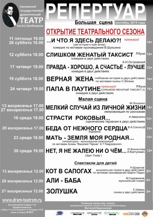 12 сентября в 18.00 зрители смогут увидеть комедию в двух действиях «Слишком женатый таксист» (Р. Куни). О чем эта история? О мужской неверности и необычном любовном треугольнике «жена-муж-еще одна жена». В лучших традициях фарса история лихо закручена, наполнена уморительными диалогами и саркастическими фразочками, а ее герои постоянно попадают в нелепые и двусмысленные ситуации.
