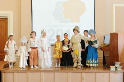 На сцене дети в сказочных костюмах составили компанию писателям. Они начинают читать наизусть произведения Пушкина. Некоторые из них еще совсем маленькие, я едва вижу их со сцены, но их харизма и выразительность чтения завораживают.