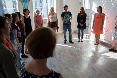 Эффективны ли такие занятия? Мне, как НЕ специалисту в данной области, сказать тяжело. Но как человек со стороны, я мысленно провожу одну забавную аналогию: в самом начале двухчасового занятия аудитория напоминала пришедших на лекцию студентов – пустующий первый ряд, забитая «камчатка», неуверенные ответы на вопросы лектора, растерянный взгляд тех, кто пришел на пару в первый раз. Но Олег Владимирович (а называть человека, занимающегося достойным делом, мне хочется именно так), кажется, достаточно легко чувствует простую людскую зажатость. Раз за разом, чередуя привычную беседу и невербальные упражнения, он все-таки заставил улыбнуться даже самых невеселых из нас. Ну а когда пришел черед задавать вопросы, сразу стало понятно, что каждый сюда пришел по своей причине и со своими проблемами. Но знаете, если где и встречались в этот момент редкие улыбающиеся россияне, то однозначно на третьем этаже бывшей типографии, около взрывающих тишину городских трамваев, в белой-белой комнате.