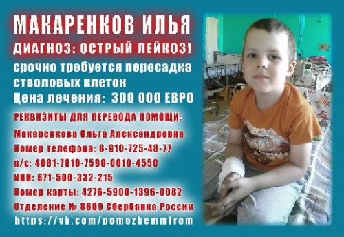 Кстати, в первую очередь показ проходил в поддержку Ильи Макаренкова. Мальчику всего пять лет, а у него уже поставлен страшный диагноз – рак крови. Сейчас он находится в клинике в Израиле и нуждается в срочной операции.