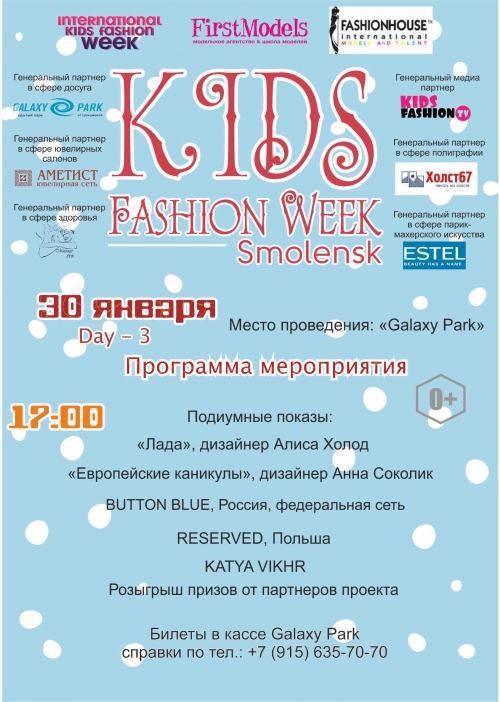 С 27 по 31 января в Смоленске будет идти детская неделя моды. В первый день мероприятие пройдет в КЦ «Заднепровье», в последующие дни в «Galaxy Park».