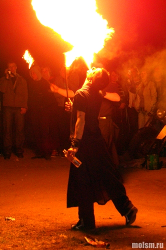 Завершался слет зажигательно. В прямом смысле. Зрителей ждало шикарное фаер-шоу, стриптиз и салют, раскрасивший уже ночное небо над Печерском… Остается поблагодарить организаторов за отличный праздник, пожелать всем байкерам ровной дороги. А летом нас ждет еще несколько опен-эйров от «Ночных волков», а также феерическое закрытие сезона. «В этот раз не было газовых гарелок – пожарные не разрешили… Но закрывать сезон собираемся по полной! Все будет гореть и взрываться!» — обещают организаторы.