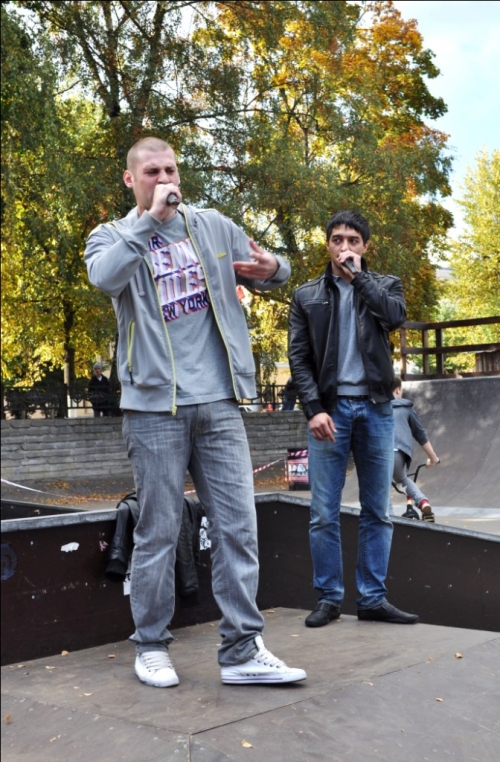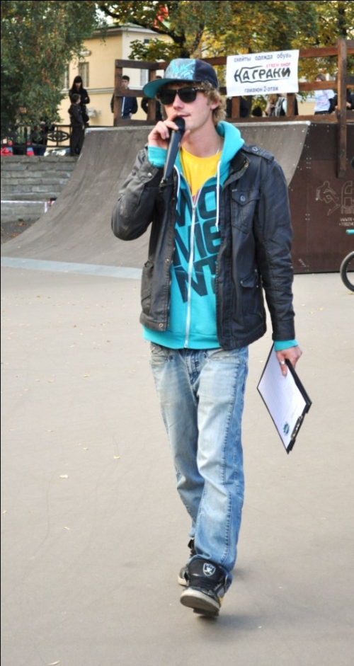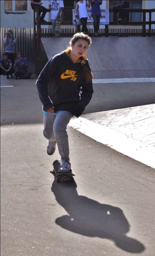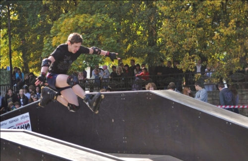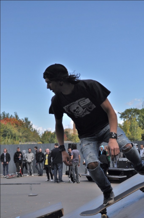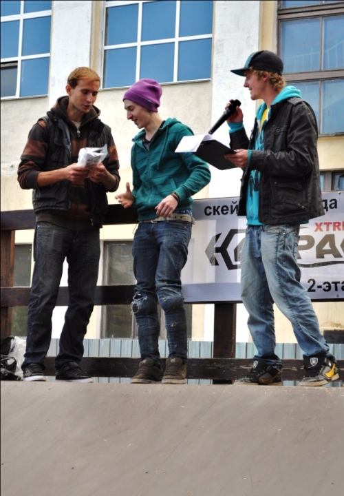 Первыми выступали скейтеры. Сначала зрителей ждала индивидуальная программа, состоящая из трюков. Затем финал. В результате первое место завоевал Евгений Ткачев, Игорь Козлов занял второе место, а Максим Исаченко и Павел Монс поделили между собой третье место. Стоит отметить единственную девушку на соревнованиях. Лена хоть и не показала блестящего результата, но безусловно достойна похвал.
