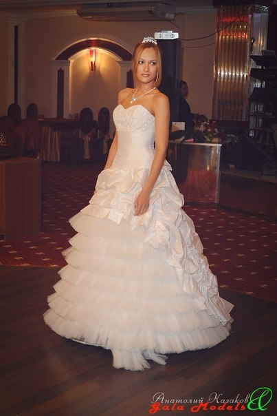 Начало конкурса красоты прошло несколько не стандартно. Оно началось с того, с чего обычно заканчиваются данные мероприятия: с демонстрации Мисс Смоленский регион Юлией Кайгородовой прекрасного свадебного платья от Свадебного клуба Смоленска.