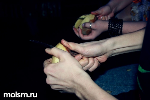 Конкурсы и подарки также соответствовали стилю вечеринки. Ребята почистили картошку на скорость, за что и получили пироги в подарок. Потом пели частушки, матерные, конечно. Однако воспитанный ди-джей учтиво «запикивал» все колкие словечки. Оказалось, что матерных частушек ребята знают достаточно. Еще бы, ведь на каких факультетах учатся!