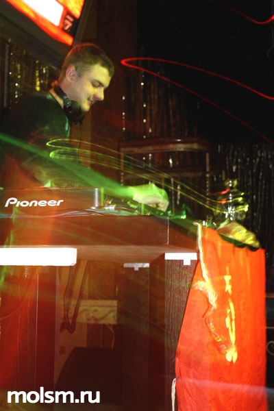 Несмотря на то, что народу было немного, на танцполе все время что-то происходило. Мало кто сидел на месте, всем хотелось двигаться. Музыка была соответствующая. Никаких современных битов, только старое-доброе ретро. Ди-джейская стойка была украшена флагом СССР. На сцене лежали сено и мешок с луком. Колхозный антураж удался!