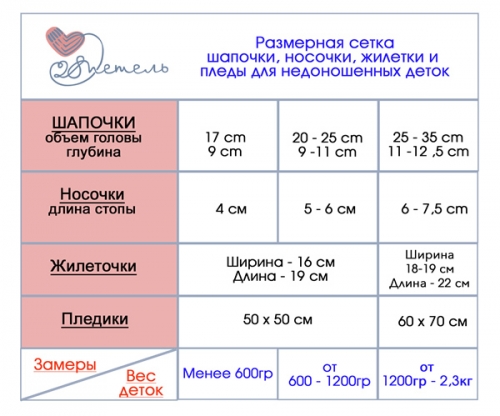 Связанные членами клуба комплекты будут БЕЗВОЗМЕЗДНО, то есть ДАРОМ, передаваться в отделения для выхаживания недоношенных детей нашего города.