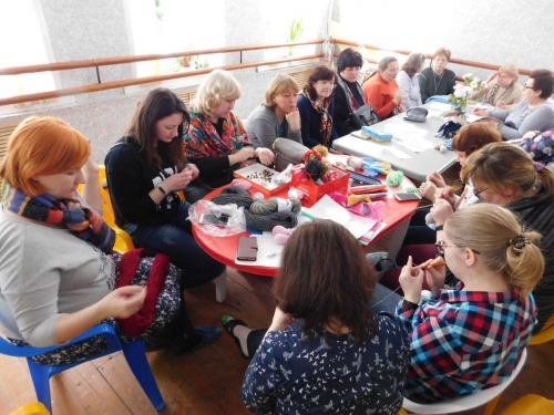 На фото — мастер-класс по вязанию участников смоленского клуба