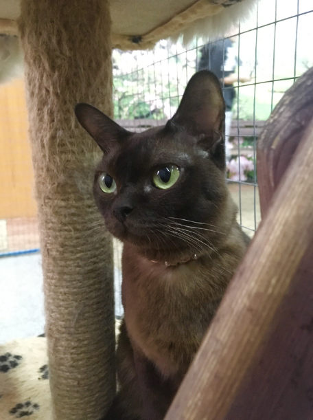Кошки находятся в больших вольерах, оборудованных домиками и скамеечками. На каждом вольере висит табличка с кратким описанием породы каждой кошки.
