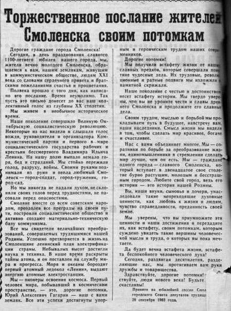 Таким образом, минувшая суббота стала для смолян уникальным днем, когда соприкоснулись прошлое и настоящее, а в будущее удалось послать небольшой «привет».
