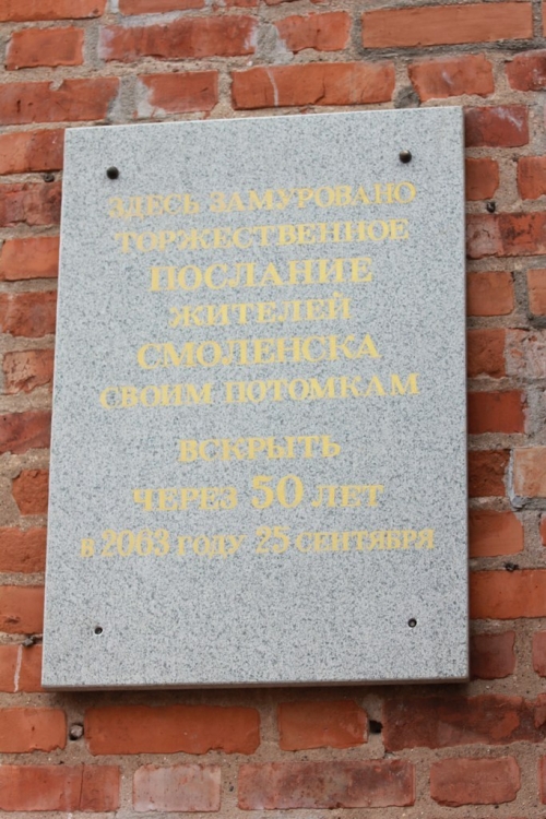 28 сентября состоялось торжественное вскрытие временной капсулы, а также закладка нового обращения к потомкам.В церемонии приняли участие официальные лица: заместитель губернатора Николай Кузнецов, епископ Смоленский и Вяземский Исидор, начальник департмента по культуре и туризму Владислав Кононов.