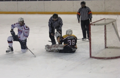 Оболяева на лед и точным ударом вколотил снаряд в сетку!