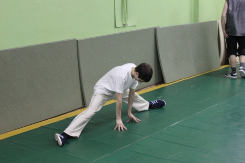 Непосредственно на занятии, конечно же, все начинается с разминки. А затем уже на самом занятии нагрузка распределяется для каждого ученика по-разному. К каждому ученику индивидуальный подход. Но со временем ребята начинают уже подтягиваться, заниматься наравне друг с другом, ну, кроме старших учеников, те занимаются уже по более усиленной системе подготовки.