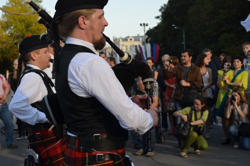 Московский оркестр волынщиков «City Pipes» подарил смолянам бесплатные мастер-классы по игре на волынке и выступил в центре города.
