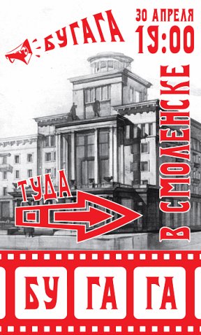 30 апреля в Доме Офицеров состоялся очередной фестиваль видеоприколов «БУГАГА». Фестиваль проходил в Смоленске третий раз, поэтому жители города уже знали, чего ожидать. Однако организаторы не могли удержаться от соблазна внести новаторство в фестиваль. Поэтому были созданы новые номинации: телеляпы и рекламный ролик.