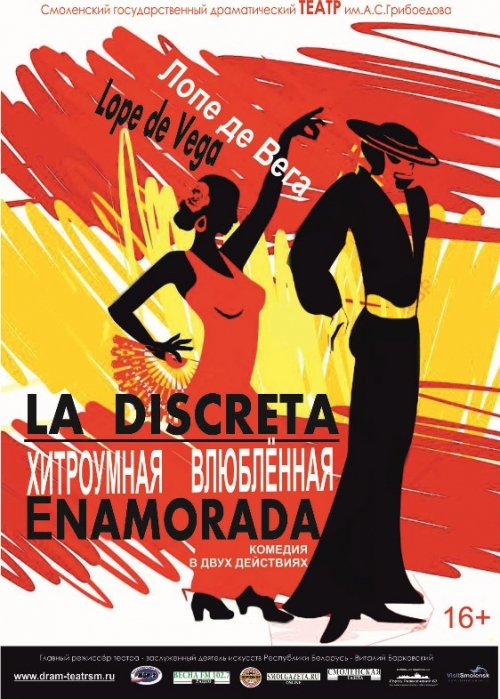 Яркие декорации и костюмы, испанские танцы и песни… 29 июня на сцене Смоленского государственного драматического театра им. А.С.Грибоедова состоялся показ спектакля «Хитроумная влюбленная» по мотивам комедии Лопе де Вега (режиссер-постановщик — Алина Сорокина).