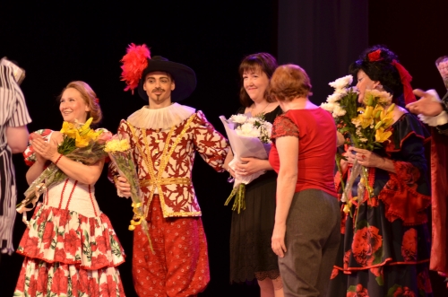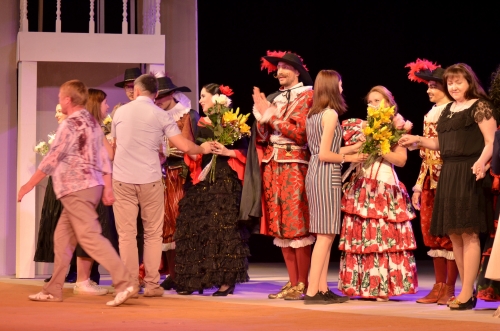 После завершения спектакля зал аплодировал стоя, все артисты получили цветы и благодарность публики.