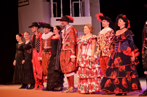 Яркие декорации и костюмы, испанские танцы и песни… 29 июня на сцене Смоленского государственного драматического театра им. А.С.Грибоедова состоялся показ спектакля «Хитроумная влюбленная» по мотивам комедии Лопе де Вега (режиссер-постановщик — Алина Сорокина).