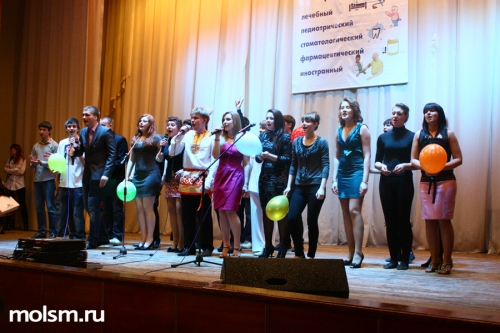 45 лет, вдвойне приятно. Поздравлять студентов пришли их будущие пациенты – маленькие дети, которые читали стихи про врачей, танцевали, ставили сценки о том, как важна работа педиатра. Пусть ребята выступали почти без микрофонов, их довольно хорошо было слышно в зале. Зрители слушали внимательно и умилялись. Особенно понравилась фраза: