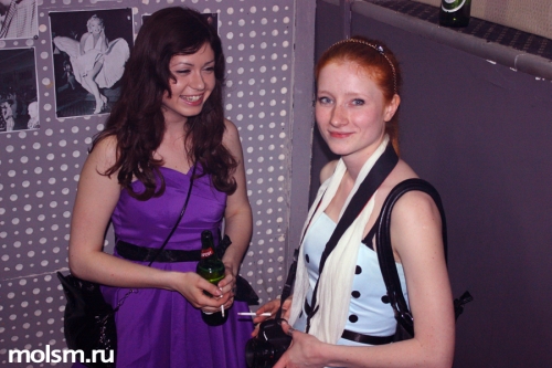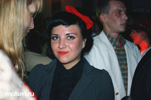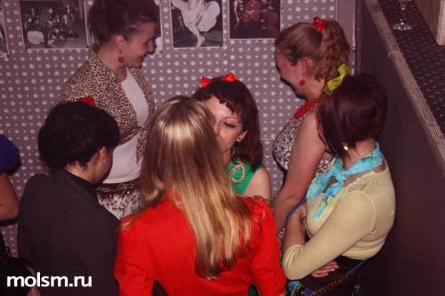 Во-первых, это яркие наряды. Девушки облачились в разноцветные платья, заплели в волосы красные ленты и красную помаду решительно нанесли на губы. Мужчины оказались не так изобретательны: лишь одного Элвиса Пресли удалось обнаружить в толпе. Модниками вечера стали ребята из группы