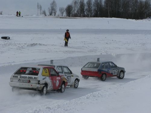 Спортсменам и зрителям в общем-то повезло с погодой: небо над полигоном периодически озаряло солнышко, и летящие по заснеженной трассе машины были хорошо видны. По итогам заездов высокие гости наградили лучших спортсменов. Вот Губернатор вручает грамоту лучшему гонщику в классе «Юниор» по итогам 2010 года