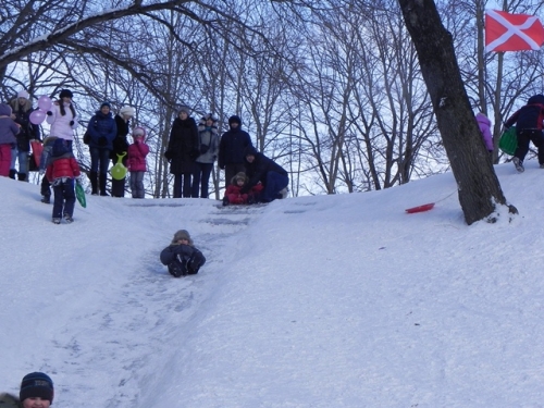На детской площадке у комнаты смеха помимо многочисленных игр и конкурсов с участием ростовых кукол, активисты проводили русские народные забавы, такие как «чехарда» и другие. Молодежь участвовала в конкурсах катания с 2 гор по разные стороны массового поля.