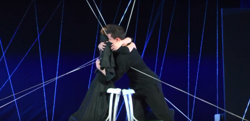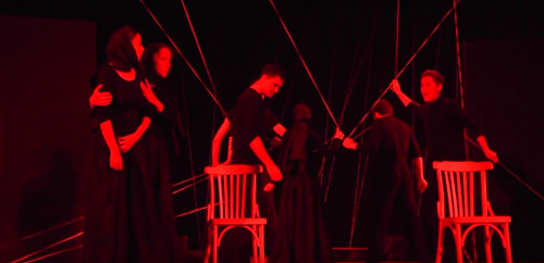 Еще одно смелое решение было найдено в сценографии. Чтобы подчеркнуть запутанность и сложность сюжета, на площадке были натянуты текстильные тросы, в хитросплетениях которых герои пьесы влюблялись, терялись, расставались и принимали трагические решения.