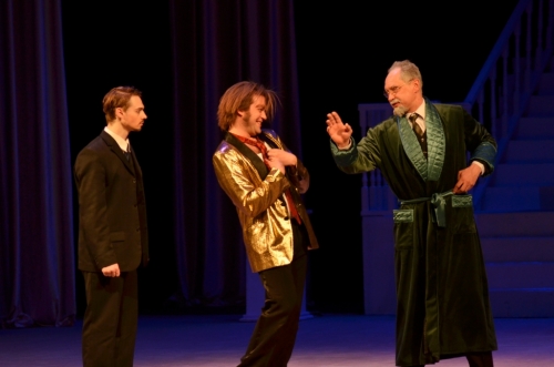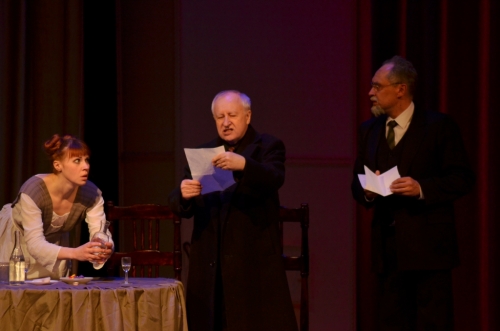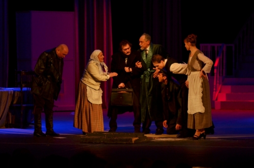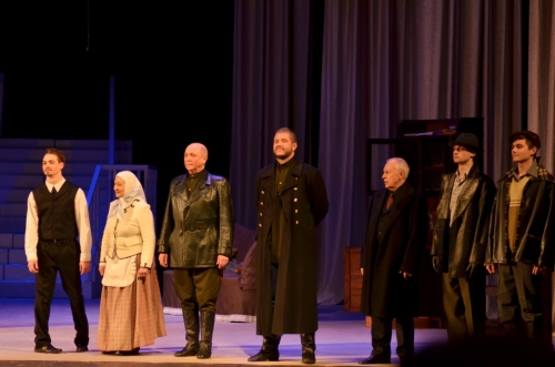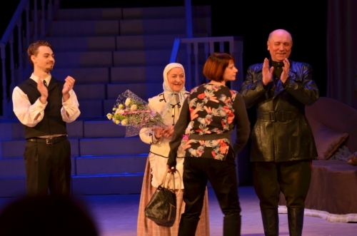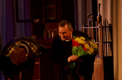 После поздравления труппа театра представила премьерный спектакль — историю в двух действиях по мотивам повести А.М.Булгакова «Собачье сердце» в постановке заслуженного деятеля искусств Республики Беларусь Виталия Барковского.