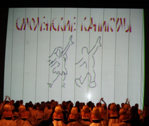 «8 баб»: она исполнена без музыки, а под ритм, отбиваемый каблуками, и это совсем не степ. Ведущие фестиваля отметили, что этот номер впечатляет артистизмом и мимикой танцовщиц. Помимо того, что при объявлении каждого танца указывался коллектив, который его исполнит, 2 номера были названы как авторские постановки