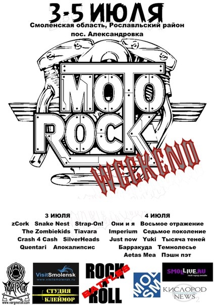 С 3 по 5 июля байкеры, рокеры и меломаны соберутся на берегу Десны, чтобы отдохнуть, принять участие в мотоконкурсах и посмотреть рок-концерт с участием молодых коллективов из Смоленской, Калужской, Брянской и Московской области.