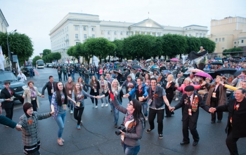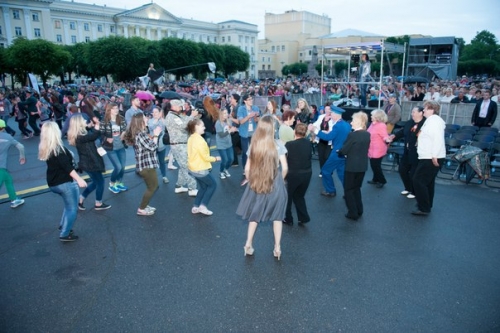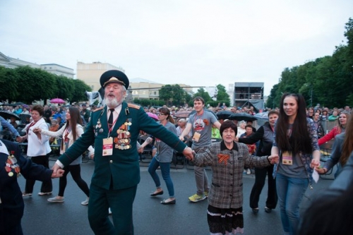 С восьми часов вечера на площади зарядил мелкий дождик, но это не отпугнуло ни смолян, ни участников концерта. Волонтеры, занимающиеся подготовкой концерта и помогавшие организаторам с 9 часов утра, выбежали на площадку и начали танцевать. На одной из песен ребята увлекли в хоровод ветеранов.