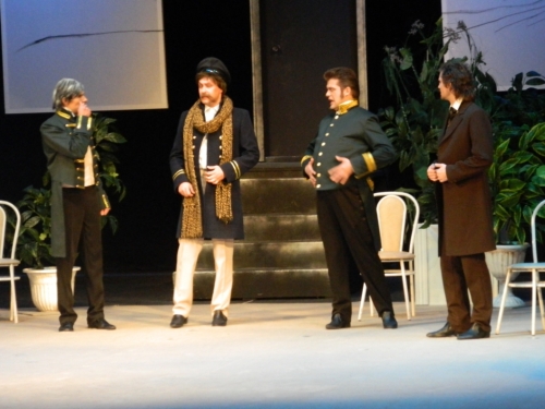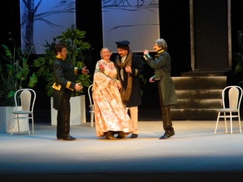 Костюмы актеров и декорации с первых минут переносят зрителей в быт и нравы девятнадцатого века. Все начинается с размышлений надворного советника Подколесина о женитьбе.