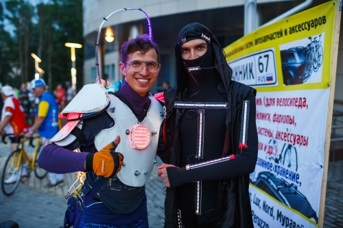 С ниндзя и нано-человеком я пообщалась меньше всего: ведущий объявил, что парад скоро начнется и велосипедисты неспешно потянулись к линии старта. Когда колонна стартовала, мне показалось, что Максим и Роман, кажется, сверкали ярче всех.