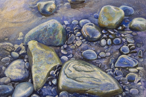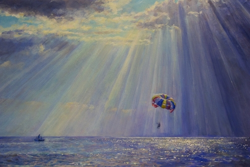 Умиротворенность – подходящее слово. А Ксения словно знала об этом, так и назвав одно из полотен: «Тишина». Приглядевшись, можно заметить на картине настоящие зернышки песка, вероятно, с настоящего побережья. Картина живая.