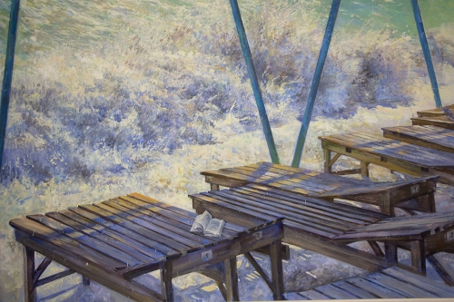 Говоря о литературе… Еще одна картина называлась «Забытая повесть» и уводила взгляд с моря на раскрытую книгу, оставленную на лежаке. А сюжет повести, как известно со школьных лет, воспроизводит естественное течение жизни. Молчу.