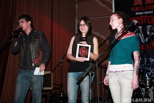 Апофеоз встречи – награждение мастеров татуировки. Татуировщики познакомили зрителей со своими творениями и получили на память часы с логотипом IV смоленской тату-конвенции. Отдельного внимания заслуживают все работы, но нам хотелось бы отметить портретное тату от очаровательной питерской мастерицы