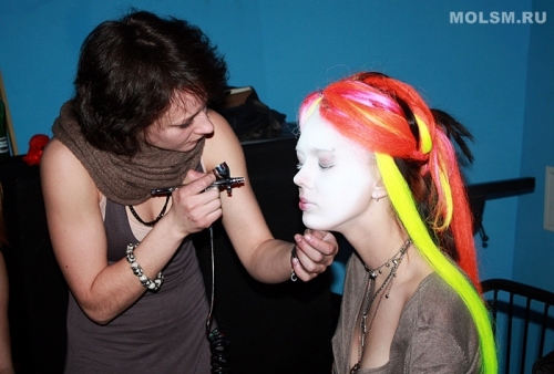 Впервые на смоленской конвенции бок о бок с татуировщиками работала московский дизайнер Тая Додина, специализирующаяся на боди-арте. Потрясающий образ в стиле фрик-шоу был создан буквально на наших глазах.