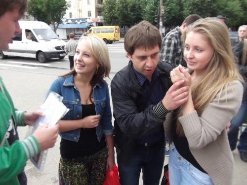 «Я прошёл тренинг РМЭС ещё в 2007 году в Брянске, с тех пор общение с девушками доставляет радость и удовольствие, всё просто замечательно. РМЭС действительно помогает изменить свою жизнь! Сегодняшняя акция проходит на ура! Все весело и зажигательно».