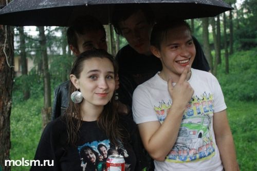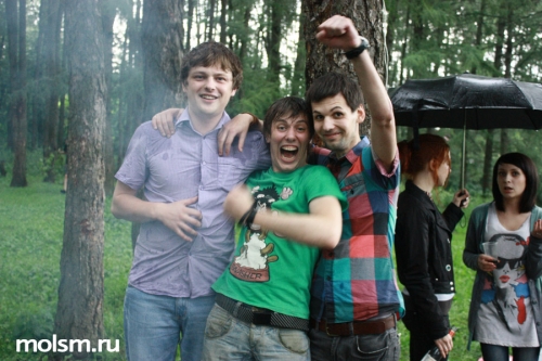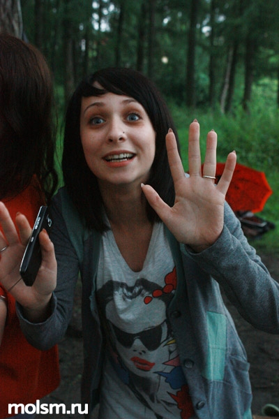 Спустя часа два-три собралось около 16-18 человек. Маленькая полянка под зелеными елями наполнилась смехом и различными разговорами о неважном. Атмосфера chill out царствовала уверенно. То там, то тут болтали о мемах, предстоящей «Афише» и дожде, который нещадно поливал всех. Самые умные догадались взять зонтики, остальные стояли то прикрывшись пледом, то просто так, ловя руками холодные капли.