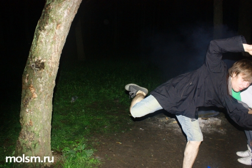 Около двенадцати часов ночи, когда стемнело, поступило предложение пойти в игровой клуб и там продолжить веселье. Но, как в сказке, одна девушка потеряла туфлю, и всем пришлось ее искать. Около 10 человек с фонариками на телефонах или просто с горящими экранами плееров/айфонов бродили по лесу в поисках утерянной обуви. Найти туфлю так и не удалось, но миссия была еще не закончена, и самые отважные вызвались-таки посетить место встречи завтра, когда будет светло.