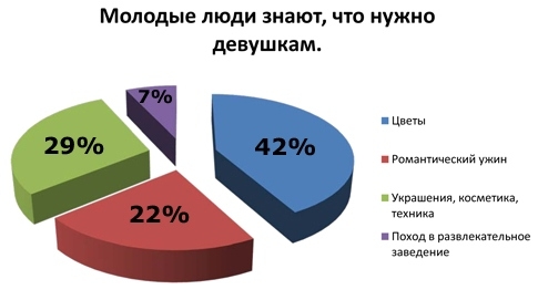 Может это удивительно, но взгляды девушек и ребят близки, практически схожи. Большинство предлагали одинаковые варианты подарков (цветы, ужин, украшения).