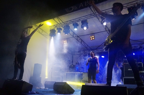 Когда наступил вечер, темнота окутала город и на территории зажглись фонари — VJ CHACK, покоривший публику своим обаянием, объявил о предстоящем выступлении нижегородских панк-рокеров FPG, которые настолько полюбились и завоевали сердца местной публики, что, по многочисленным просьбам поклонников, второй год подряд выступали в качестве хэдлайнеров.